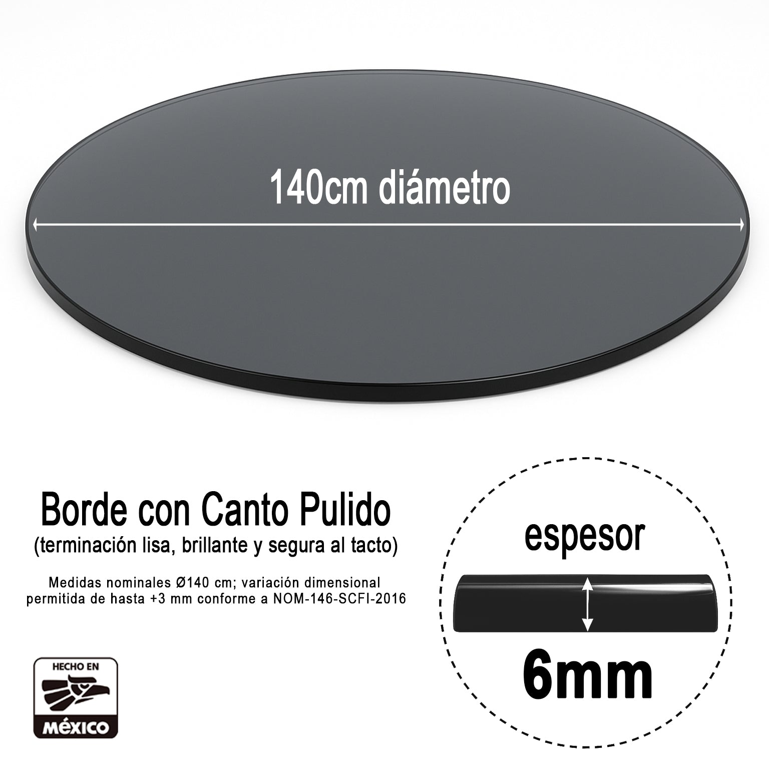Agrega hoy mismo la Cubierta Circular Vidrio Ahumado Templado 140cm a tu carrito y eleva el nivel de tus espacios con un detalle de distinción.